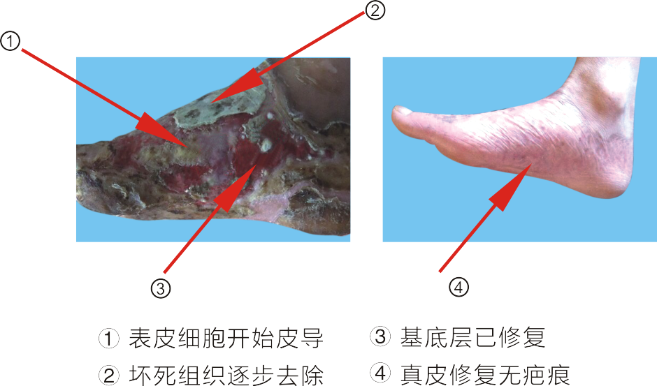 KB-ZLY-1型臭氧伤口治疗仪对伤口治疗的优效性:参考临床验证病例图。